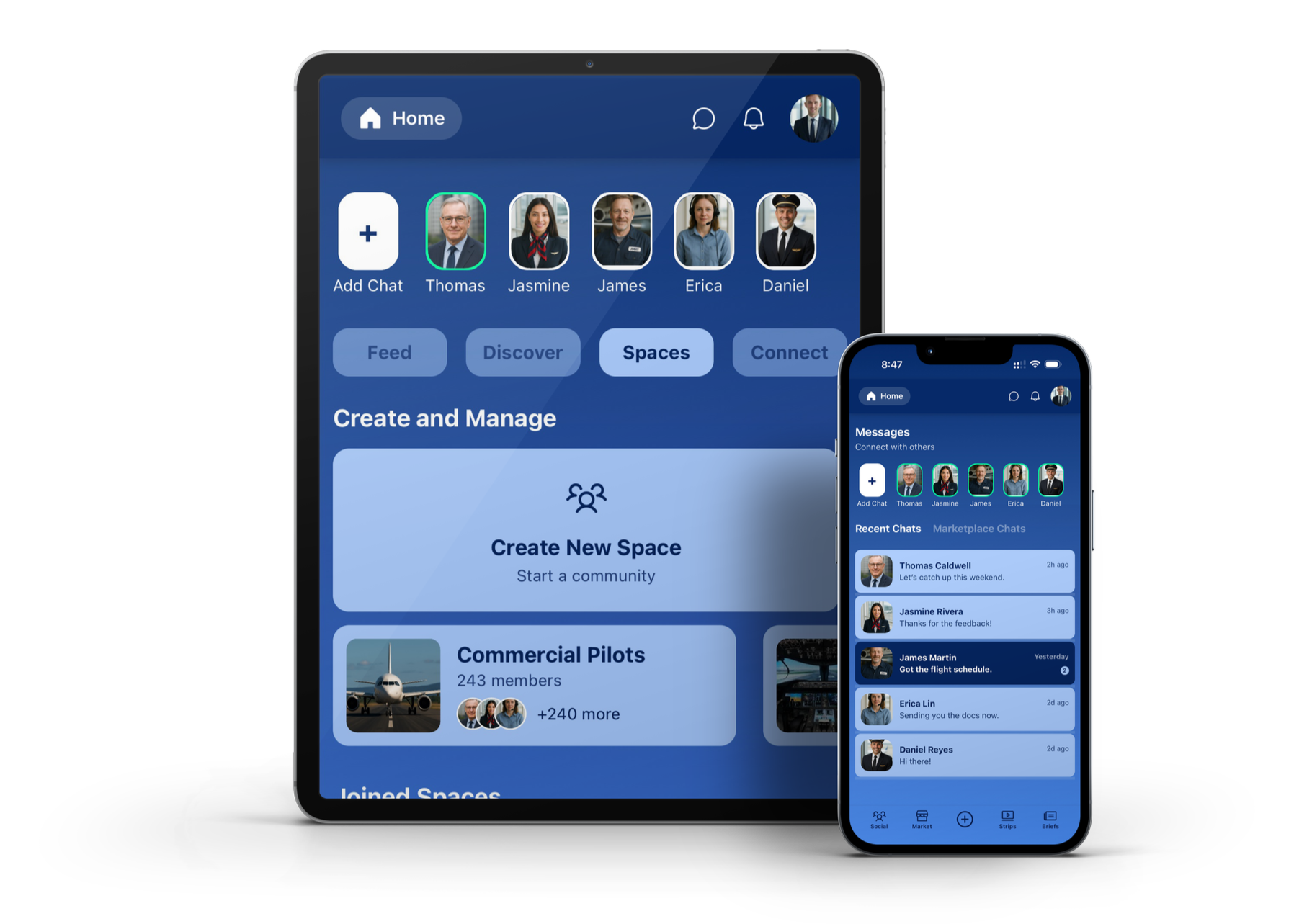 Aerway is built for iPhone, iPad, and Android phones. The interface adapts to these screen sizes, so messaging, marketplace, and reels feel fast and familiar-whether you’re in the cockpit on an iPad or using your everyday phone.